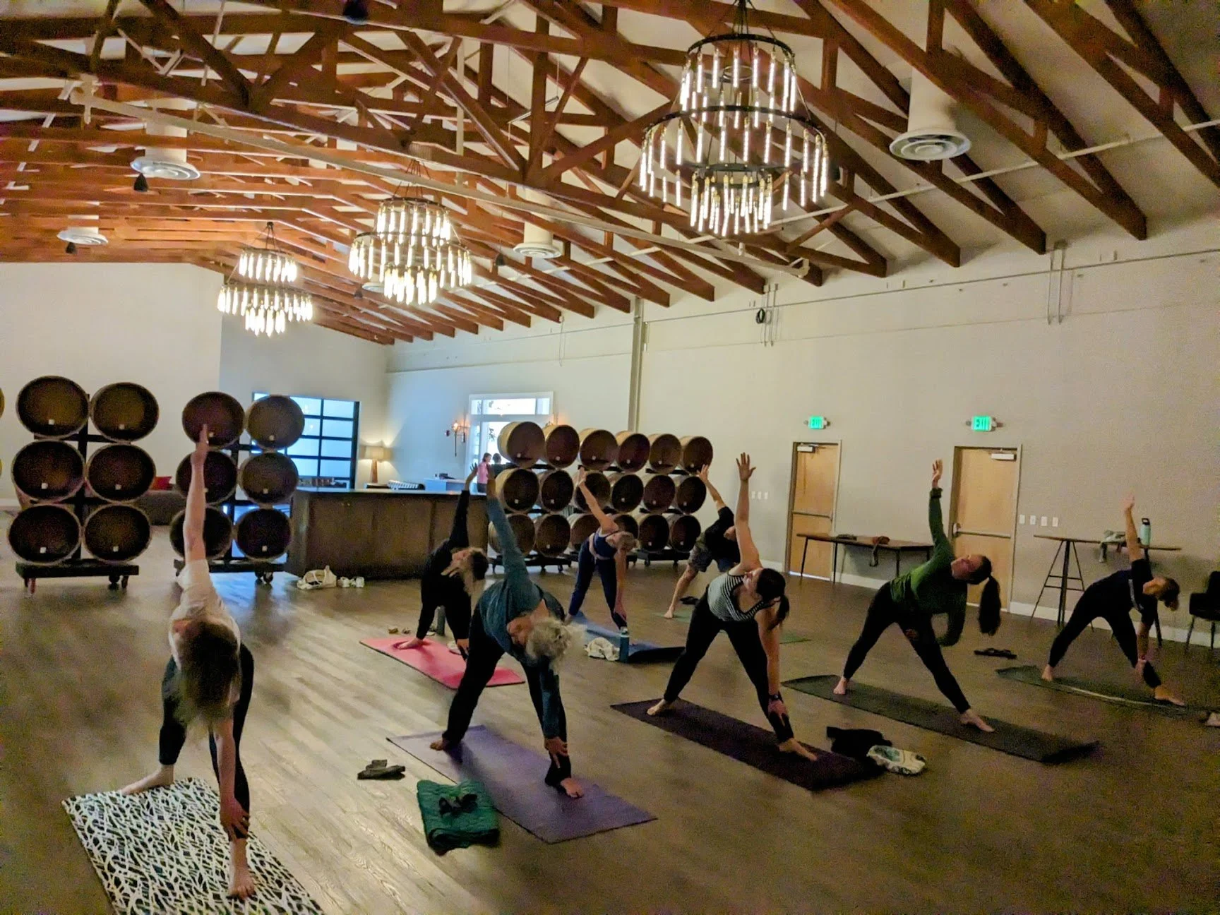SAT, 8/8, 10:30am Yoga + Wine @ EVERGREEN FAMILY WINES